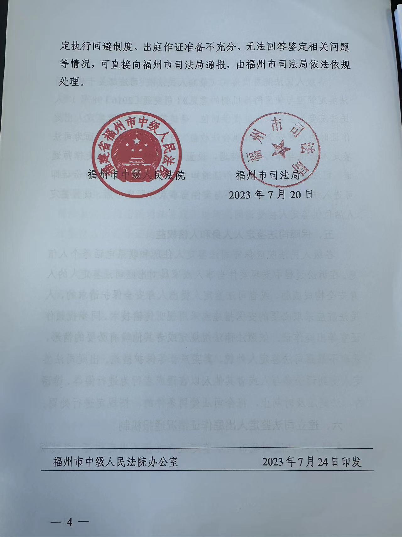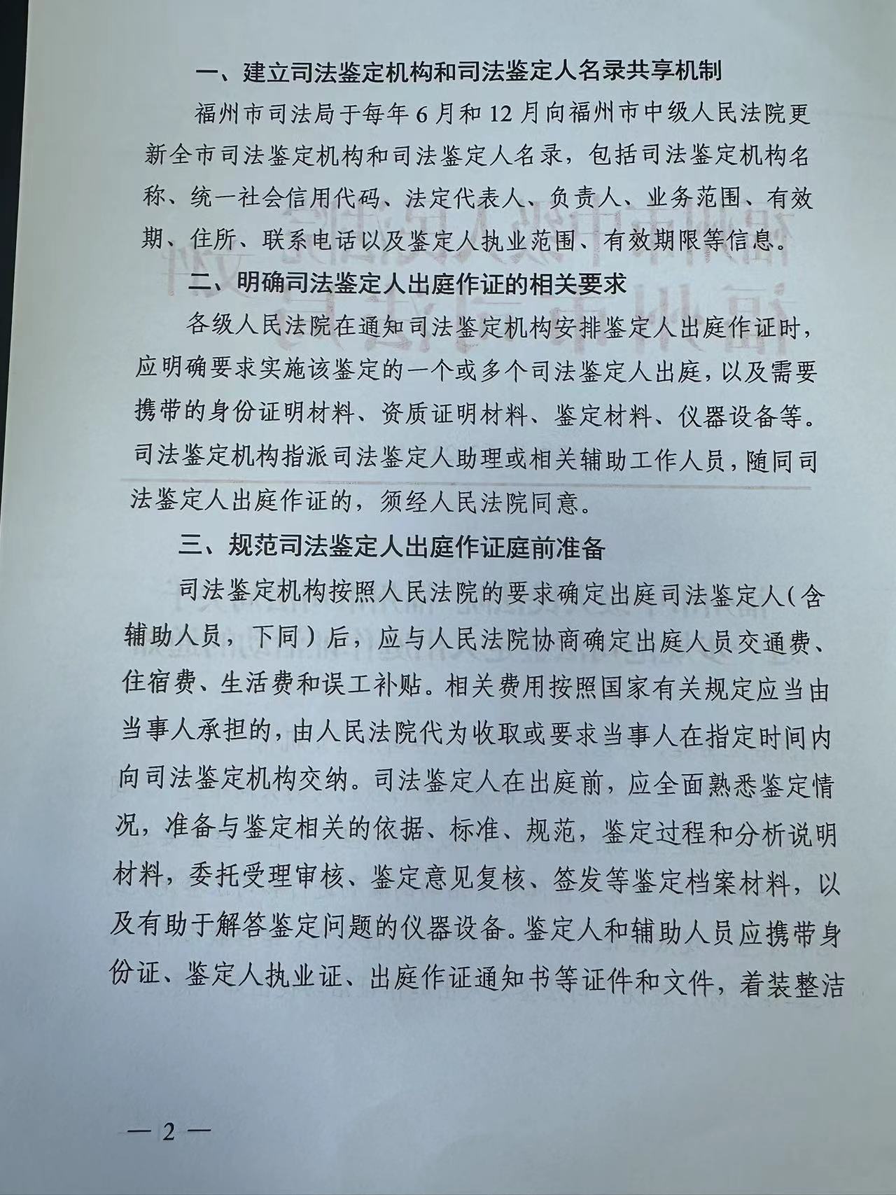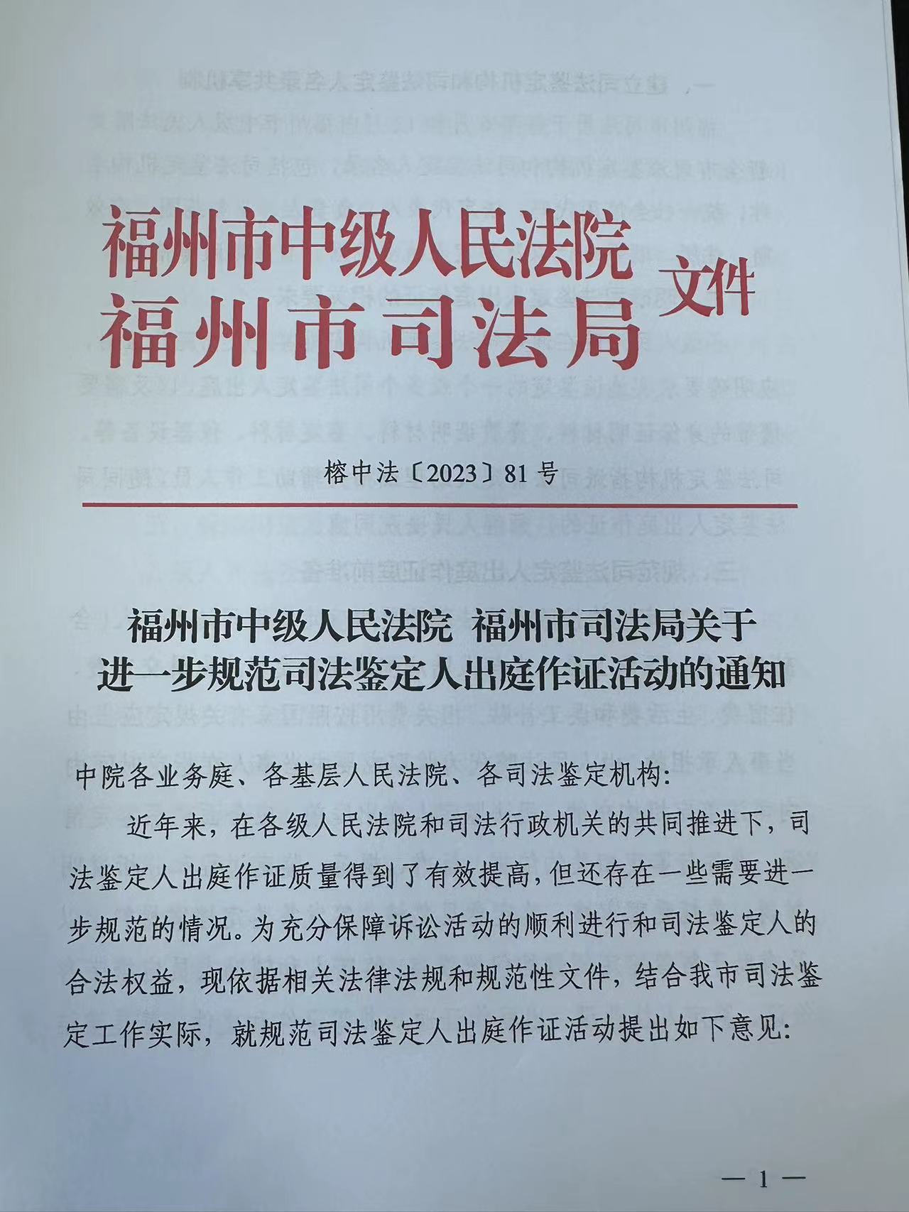 福州市中级人民法院 福州市司法局《关于进一步规范司法鉴定人出庭作证活动的通知》